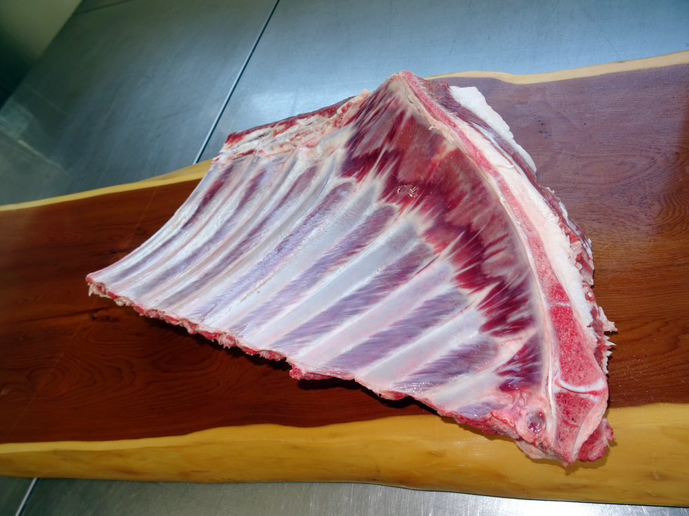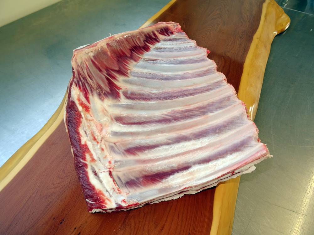 骨付きバラになります。脂肪分の多い部位で、スペアリブとしてBBQや、様々な煮込料理などお好みでお召し上がりください。